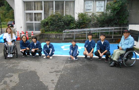 前回10/16の王祇会館にも来てもらった《車いすユーチューバーMacoさん》にはこの日も来て貰い青色塗装と、講話・車いす体験を実施しました。