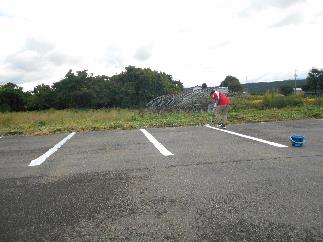 この日は施設組合員の伊藤文一さん、ボランティアでお願いした渡部秀一さん、帯刀春男さんの3人で2台分の駐車施設を再塗装しました。