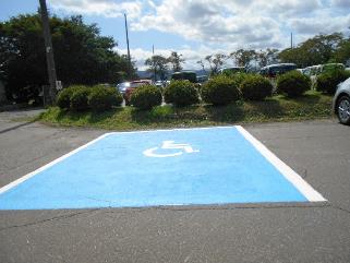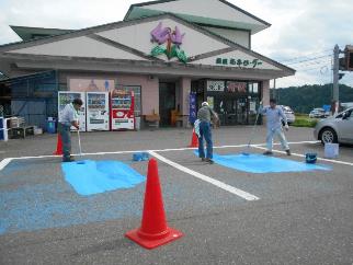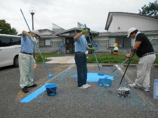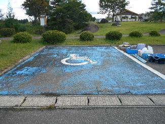 駐車場のラインや青色駐車場は施設管理者が塗り替えを行うのが当然と思うが、日常業務の中で行うのはなかなか大変。