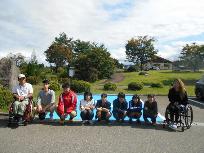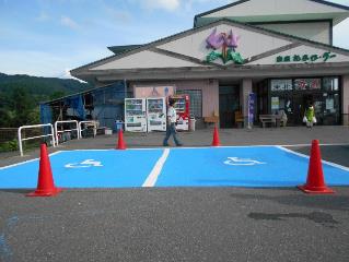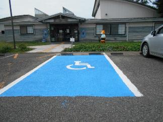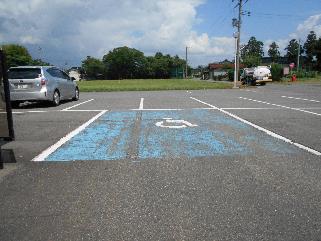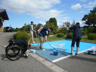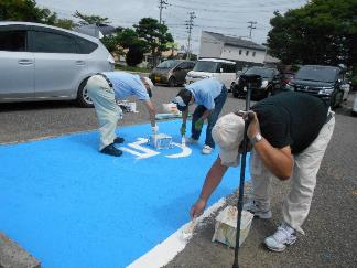 山形県支部会員の発案で始まり、平成17年から山形県条例の「さらに望ましい基準」(PDF『駐車場整備基準』参照)になっている障害者用駐車場の「前面青色」活動を今年も行っております。