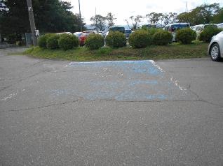積雪の多い地域の青色駐車場は隔年ごとに再塗装していますが、ここも例外ではなく極端に薄くなっていました。