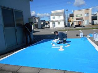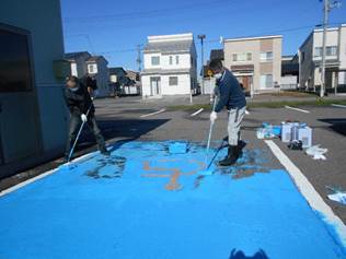 10日位前、朝暘児童館の館長さんより「青色駐車場の塗装をしたいのでお願いできませんか?」の電話がありました。