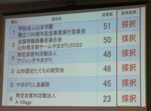 結果、山形県支部は得票数2位での採択でしたが、決定基準で申し込みがあった全てが採択され証書を頂きました。