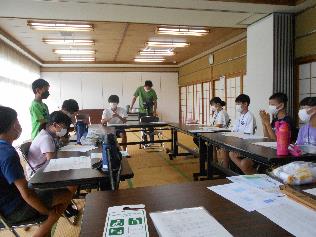 藤島地区サマーボランティア活動『令和4年度サマーチャレンジ事業』は9時半に藤島老人福祉センター多目的室に小学生、中学生計8名の参加でスタートしました。