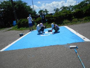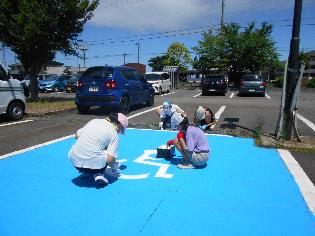 この日は青色駐車場3台分とライン引きを2班に分かれて行いました。