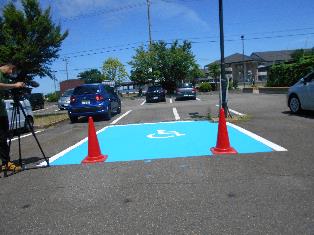 その後、私が山形県条例の望ましい基準である全面青色が始まった経緯や「なぜ青色駐車場が必要なのか」と『障害者駐車場利用証制度(PP制度)』についてお話ししました。