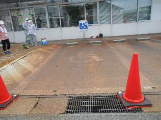 現在のゼブラ部分を無くし、全面青色塗装する確認後2班に分かれ1班から塗装を始めました。