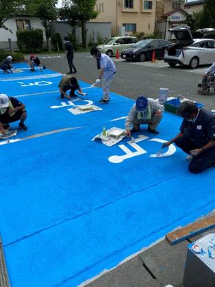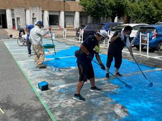 7月9日のプレゼンテーションを経て決定した、山形市コミュニティファンド支援事業第1弾がお盆前の8月12日『山形市総合福祉センター』青色駐車場の塗り替えからスタートしました。