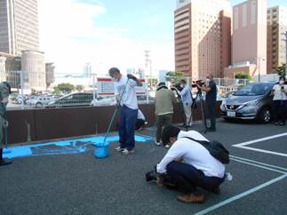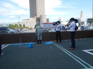 又この日は、県内の民間テレビ放送4社も取材に来られ、全社青色駐車場完成まで取材されました。