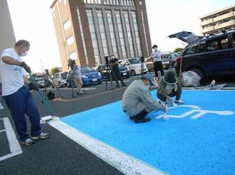 『山形市コミュニティファンド支援事業』第3弾は9月15日午後2時から『学校法人大原学園山形校』の駐車場に全面青色駐車場(『車椅子使用者用駐車施設』)を新設しました。