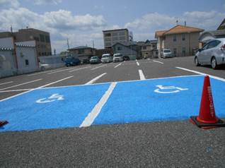 平成16年(2004年)に始まった『車椅子使用者用駐車施設』の全面青色塗装活動。