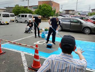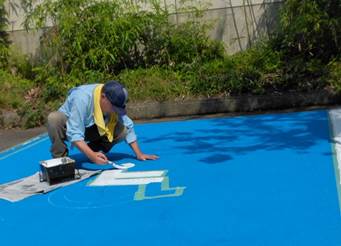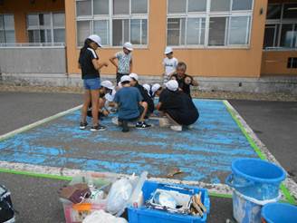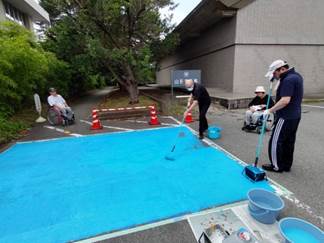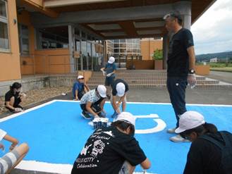 そして、この駐車場が2006年の校舎新築時から塗替えられていなかったのでは?と思えるほど青色部分が薄くなっている事に気づき「来春以降、皆さんと塗りませんか?」と話して居てこの日の塗装となりました。