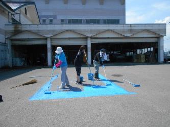 猛烈な暑さの中、9時から約3時間の塗装活動で佐藤さんは体重2k以上落ちたそうです。