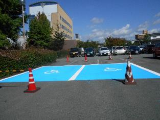 令和5年度『山形市コミニティファンド事業』として行う今年最後の塗装カ所は山形市嶋北にある《MOVIE ON(ムービーオン)山形》の『車椅子使用者用駐車施設』