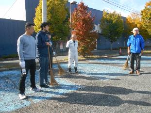 この日は前日の雨で実施が危ぶまれましたが、朝から青空になり最初に打合せした霞城公民館の鈴木事務長さん、館長の芦野さんの他3名の方で9時から開始しました。
