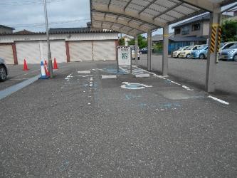 今年度最初の塗装活動は鶴岡市社会福祉協議会管理の《鶴岡ふれあいプラザかたりあい》正面にある《車椅子使用者用駐車施設》2台分。