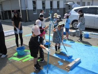協力頂いたのは昨年も同じ時期に《西部児童館前の青色駐車場》で協力頂いた〔鶴岡西部放課後児童クラブ〕の皆さん。