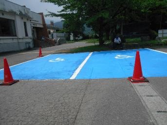 その際に、小学校正面に《車椅子使用者用駐車施設》(全面青色駐車場)がなかったので「是非来年作りませんか?」と話していたこともあって、この日の授業となりました。