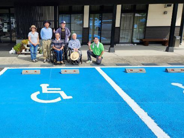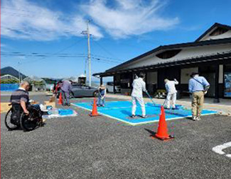 当日はコミユティファン事業委員の小野さん、羽角さんに加え須藤支部も米沢から駆け付け参加すると共に、ボランティアで参加の高橋さんと施設関係者3名での塗装活動となりました。