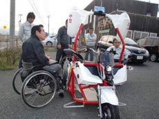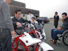 その後、私と近藤さんが試乗しましたが、頚椎損傷で手を握ったり、開いたり出来ない佐藤さんは見学だけで終わりました。